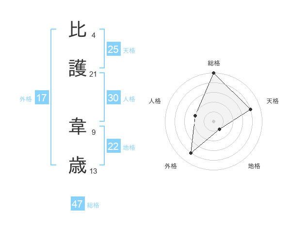 比護 韋歳さんを姓名の画数から五運を鑑定