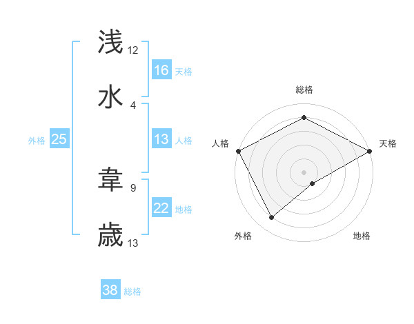 浅水 韋歳さんを姓名の画数から五運を鑑定