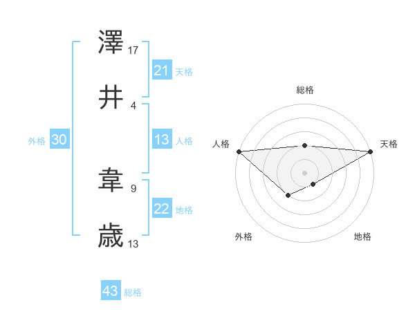 澤井 韋歳さんを姓名の画数から五運を鑑定