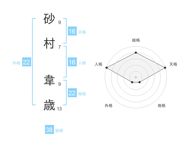 砂村 韋歳さんの天格は16画の5点!