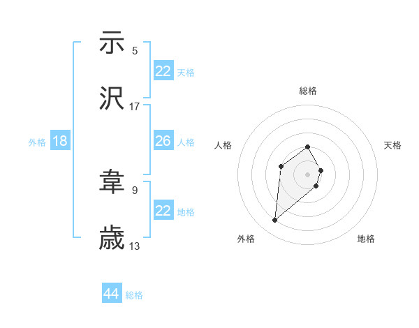 示沢 韋歳さんを姓名の画数から五運を鑑定