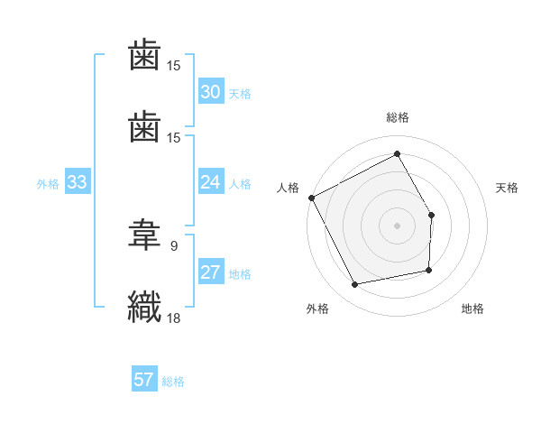 歯歯 韋織さんを姓名の画数から五運を鑑定