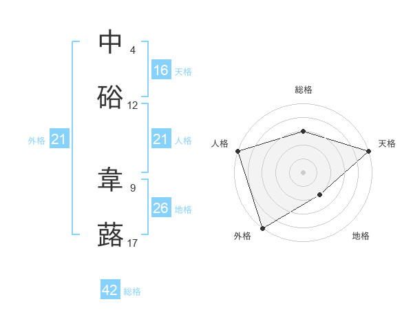 中硲 韋蕗さんの人格は21画の5点!