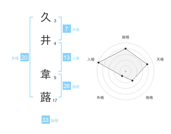 久井 韋蕗さんの総格は33画の4点!