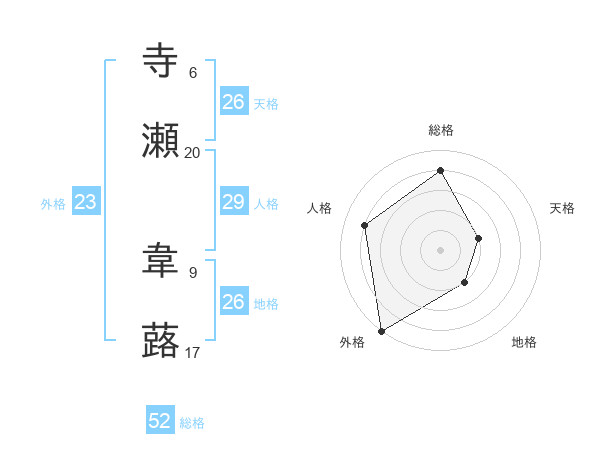 寺瀬 韋蕗さんを姓名の画数から五運を鑑定