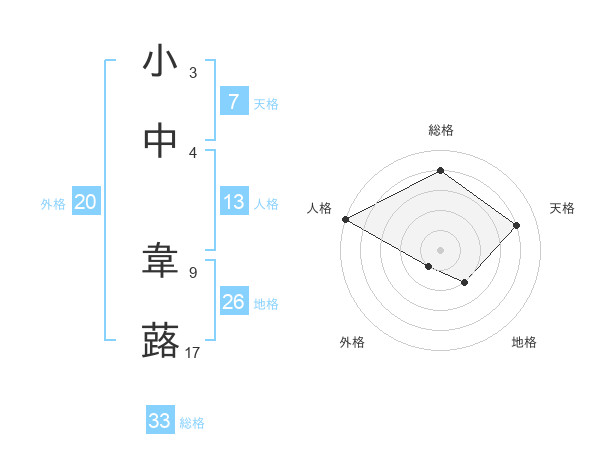小中 韋蕗さんを姓名の画数から五運を鑑定