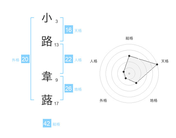 小路 韋蕗さんの総格は42画の3点!