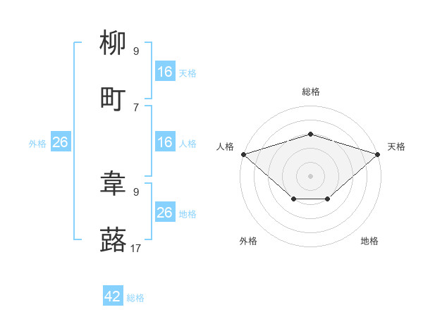 柳町 韋蕗さんを姓名の画数から五運を鑑定