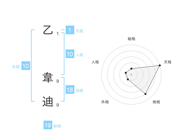 乙 韋迪さんの天格は1画の5点!