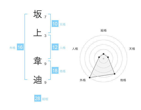 坂上 韋迪さんを姓名の画数から五運を鑑定