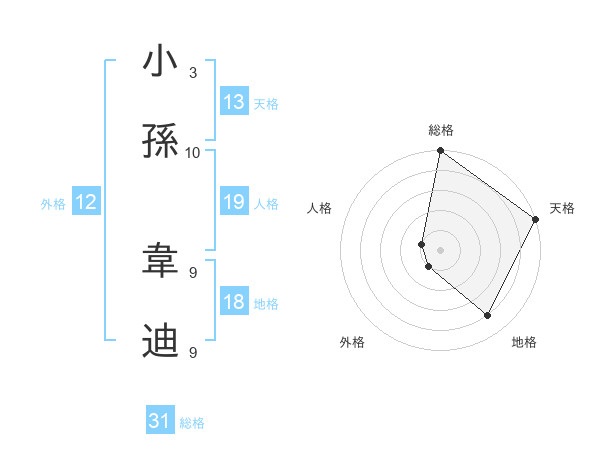 小孫 韋迪さんを姓名の画数から五運を鑑定