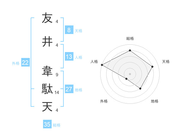 友井 韋駄天さんを姓名の画数から五運を鑑定