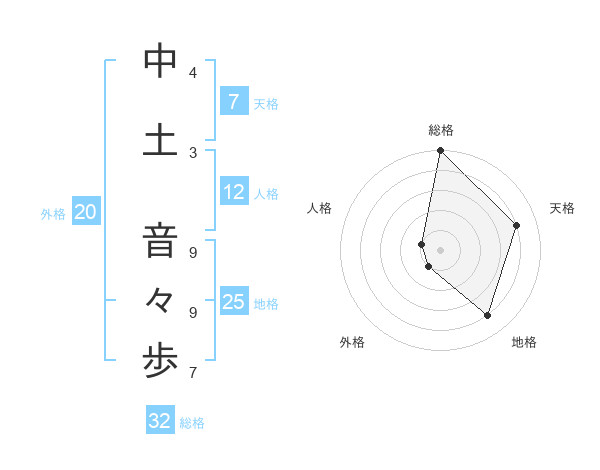 中土 音々歩さんを姓名の画数から五運を鑑定