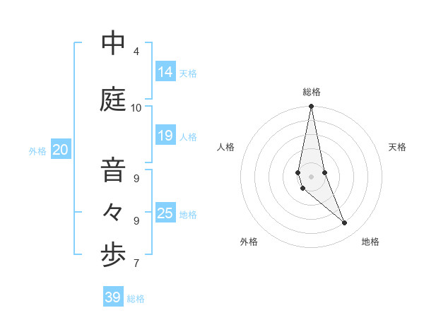 中庭 音々歩さんの総格は39画の5点!
