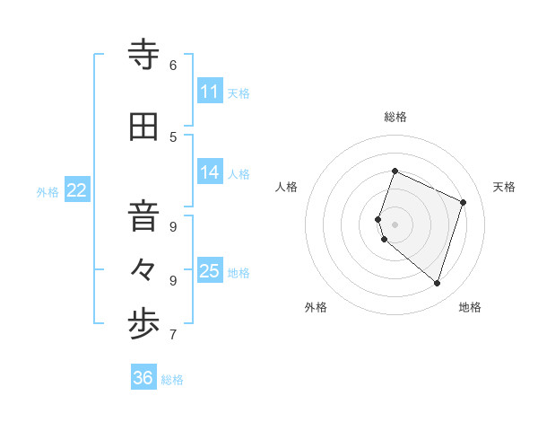 寺田 音々歩さんの外格は22画の1点!