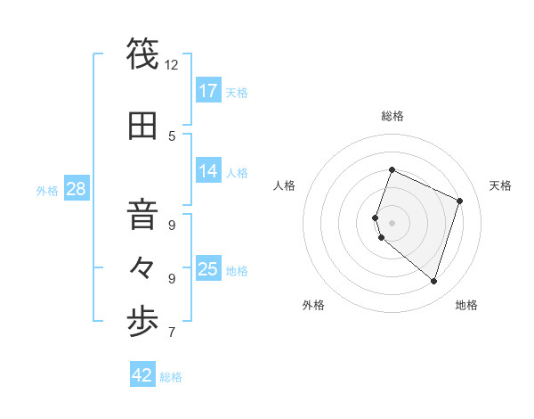 筏田 音々歩さんの天格は17画の4点!