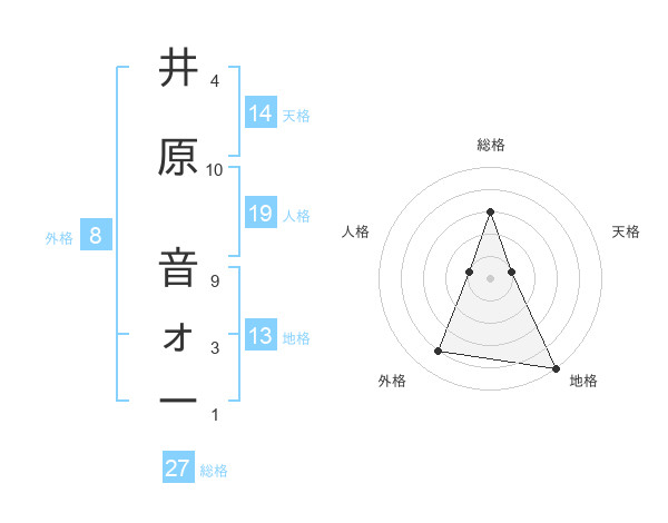 井原 音ォーさんを姓名の画数から五運を鑑定