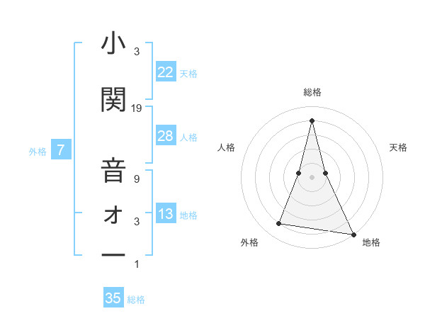小関 音ォーさんの総格は35画の4点
