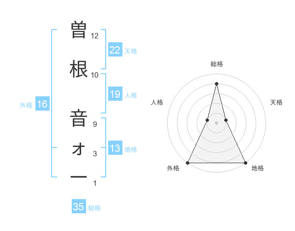 曽根 音ォーさんを姓名の画数から五運を鑑定