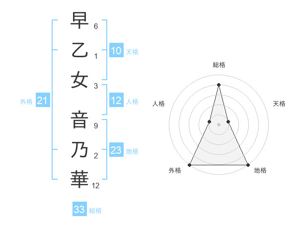早乙女 音乃華さんを姓名の画数から五運を鑑定