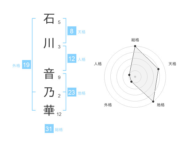 石川 音乃華さんの総格は31画の5点