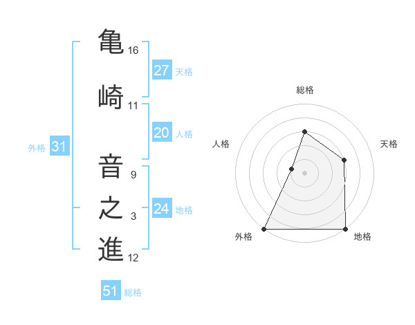 亀崎 音之進さんを姓名の画数から五運を鑑定