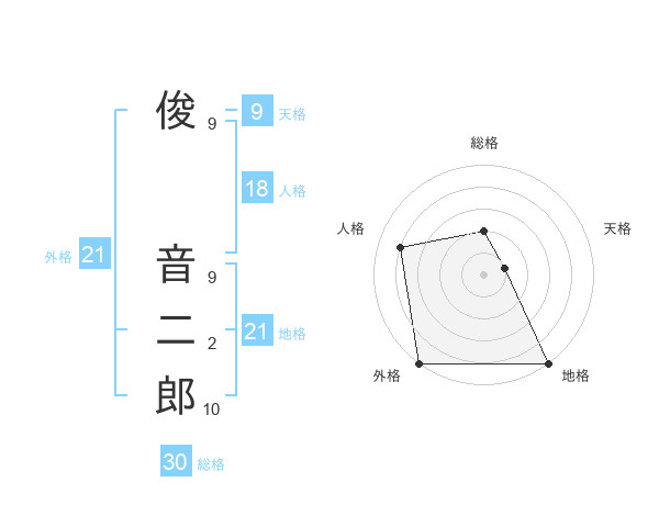 俊 音二郎さんの外格は21画の5点!