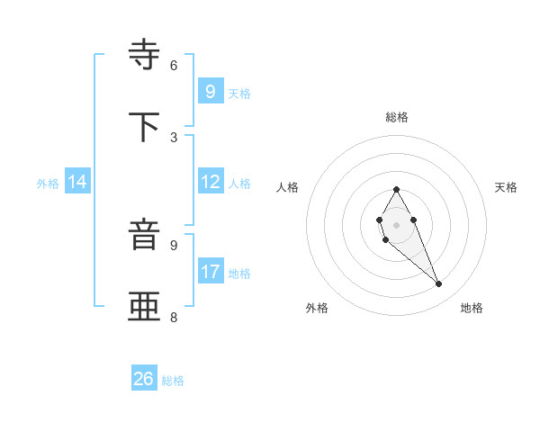寺下 音亜さんを姓名の画数から五運を鑑定