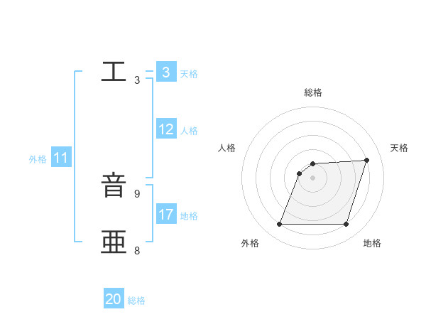 工 音亜さんの総格は20画の1点!