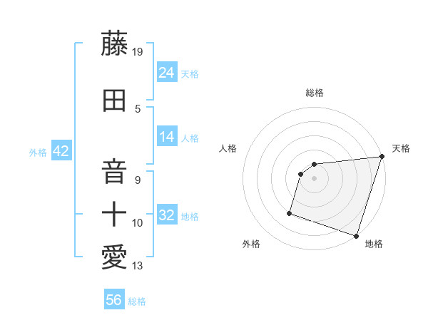 藤田 音十愛さんの天格は24画の5点!