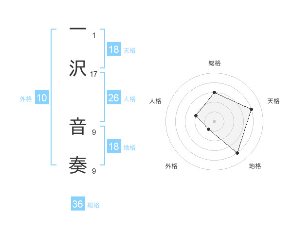 一沢 音奏さんの天格は18画の4点!