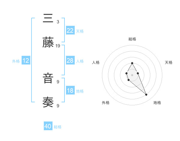 三藤 音奏さんの総格は40画の2点!