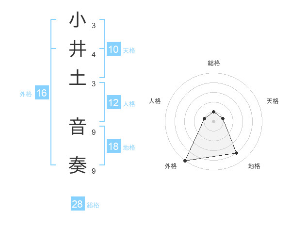 小井土 音奏さんの総格は28画の1点!