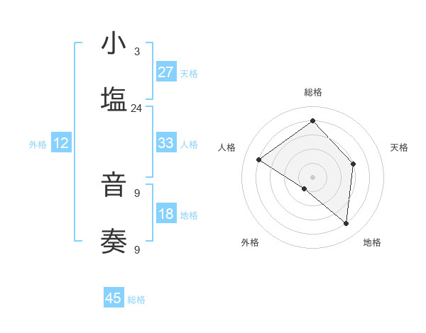 小塩 音奏さんを姓名の画数から五運を鑑定