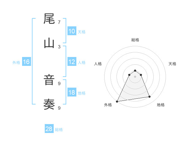 尾山 音奏さんを姓名の画数から五運を鑑定