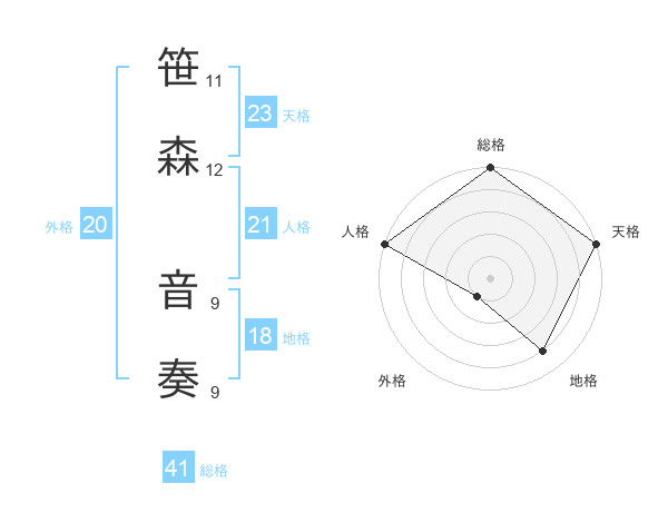 笹森 音奏さんを姓名の画数から五運を鑑定