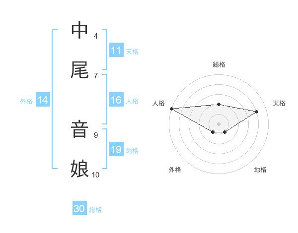 中尾 音娘さんの総格は30画の2点!
