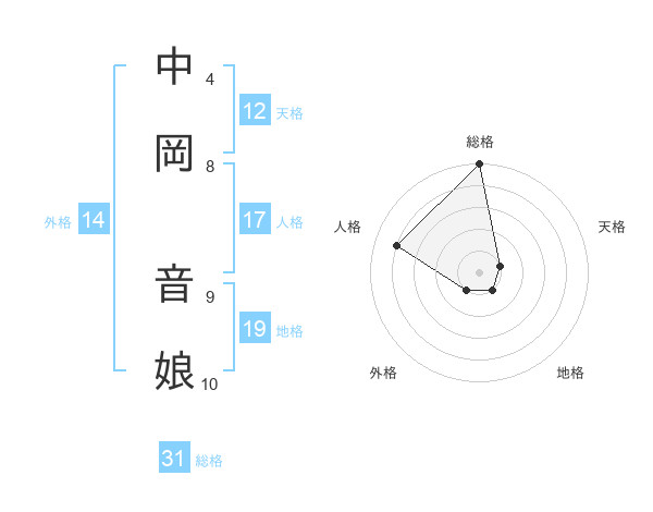 中岡 音娘さんを姓名の画数から五運を鑑定