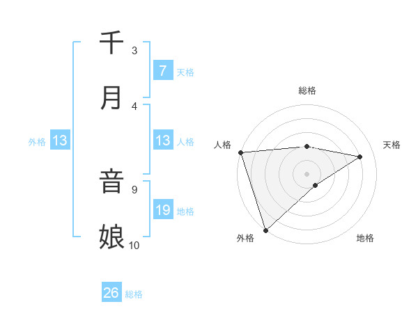 千月 音娘さんの外格は13画の5点!