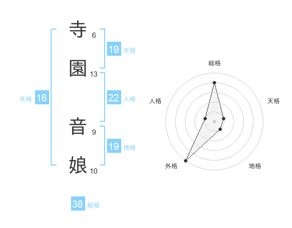 寺園 音娘さんを姓名の画数から五運を鑑定