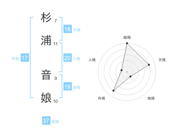 杉浦 音娘さんを姓名の画数から五運を鑑定