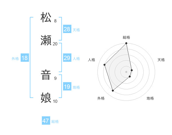 松瀬 音娘さんを姓名の画数から五運を鑑定