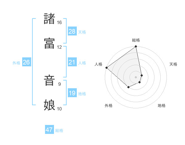 諸富 音娘さんの外格は26画の2点!