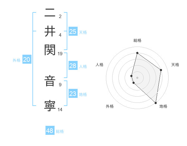 二井関 音寧さんを姓名の画数から五運を鑑定