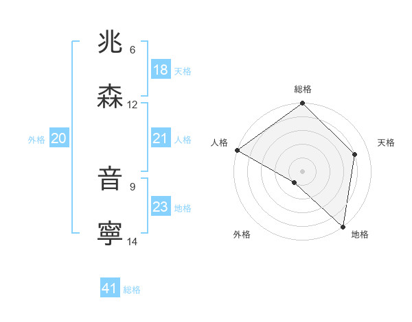 兆森 音寧さんの外格は20画の1点!