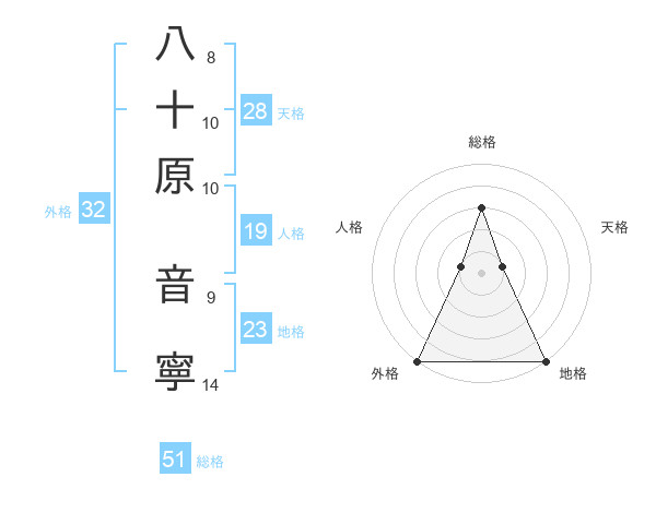 八十原 音寧さんの総格は51画の3点!