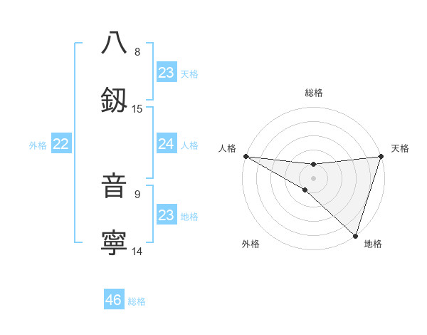 八釼 音寧さんの天格は23画の5点!