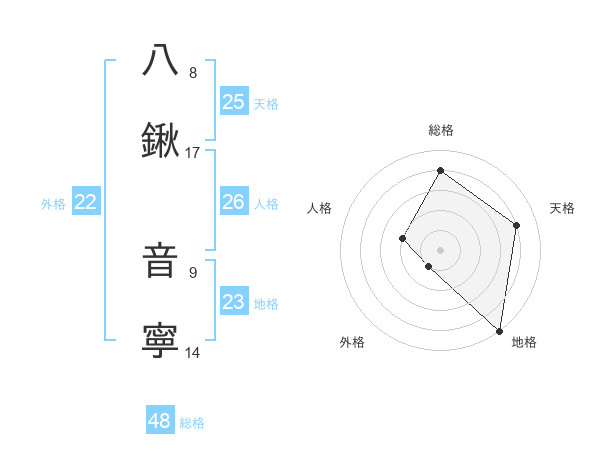 八鍬 音寧さんを姓名の画数から五運を鑑定