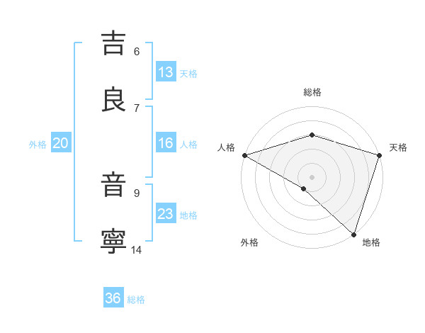吉良 音寧さんの外格は20画の1点!
