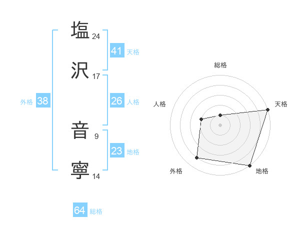 塩沢 音寧さんの総格は64画の1点!